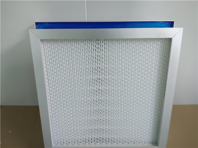 效率:H13或H14。主要用于过滤0.5μm以上的空气悬浮颗粒,做为各种过滤系统的末端过滤。液槽过滤器安装方便,密封十分可靠,是国际上普遍采用的高效过滤器的密封方法。液槽式高效过滤器,采用双面护网,以保护滤纸不被损坏。出厂前逐台测试,测试合格后方可出厂。